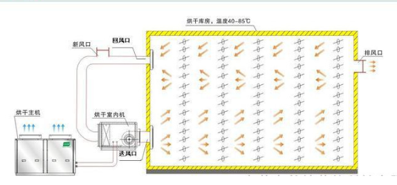 熱泵熱風(fēng)爐 (有蒸汽鍋爐的配散熱器) (也可使用燃氣) |